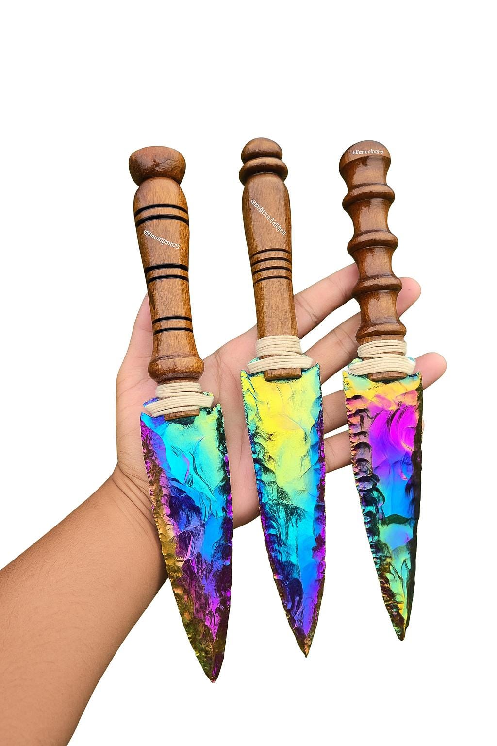 At Forest of Crystal, we believe a ritual tool should be as beautiful as it is powerful. Introducing the new 10-Inch Titanium Aura Quartz Blade, a breathtaking fusion of ancient form and cosmic energy. Hand-carved with an arrowhead handle, this stunning piece transforms the rainbow light of Titanium Aura into a focused instrument for your practice. Use its 10-inch length and sharp point to aim your intentions, cut away energetic clutter, and bathe your sacred space in full-spectrum light. It’s not just an artifact—it’s your new ultimate tool for clarity, courage, and pure joy.